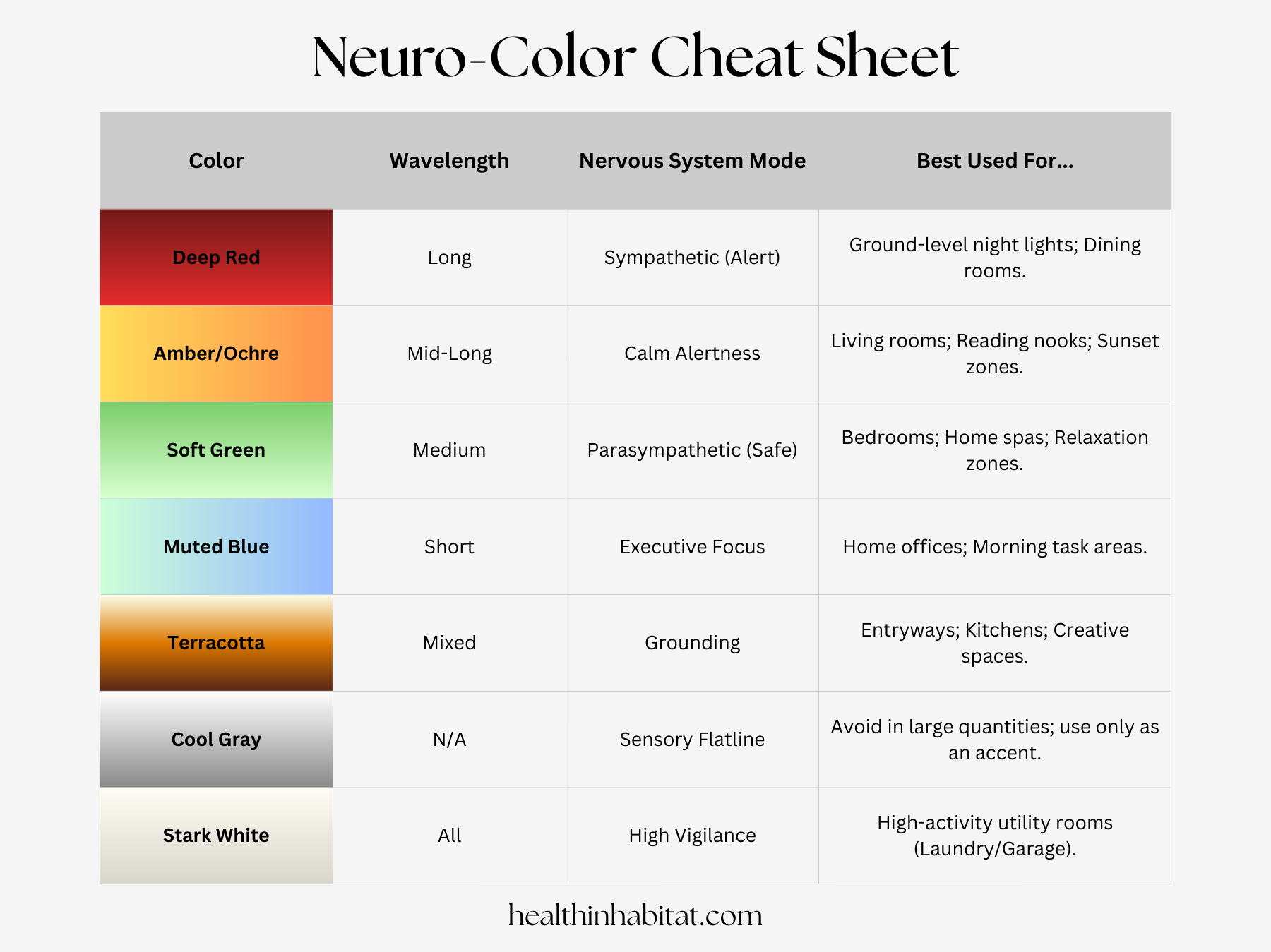 The "Biological Home" Fix: Use soft greens and muted blues in bedrooms and "sanctuary" spaces to encourage the Vagus nerve to switch into repair mode.